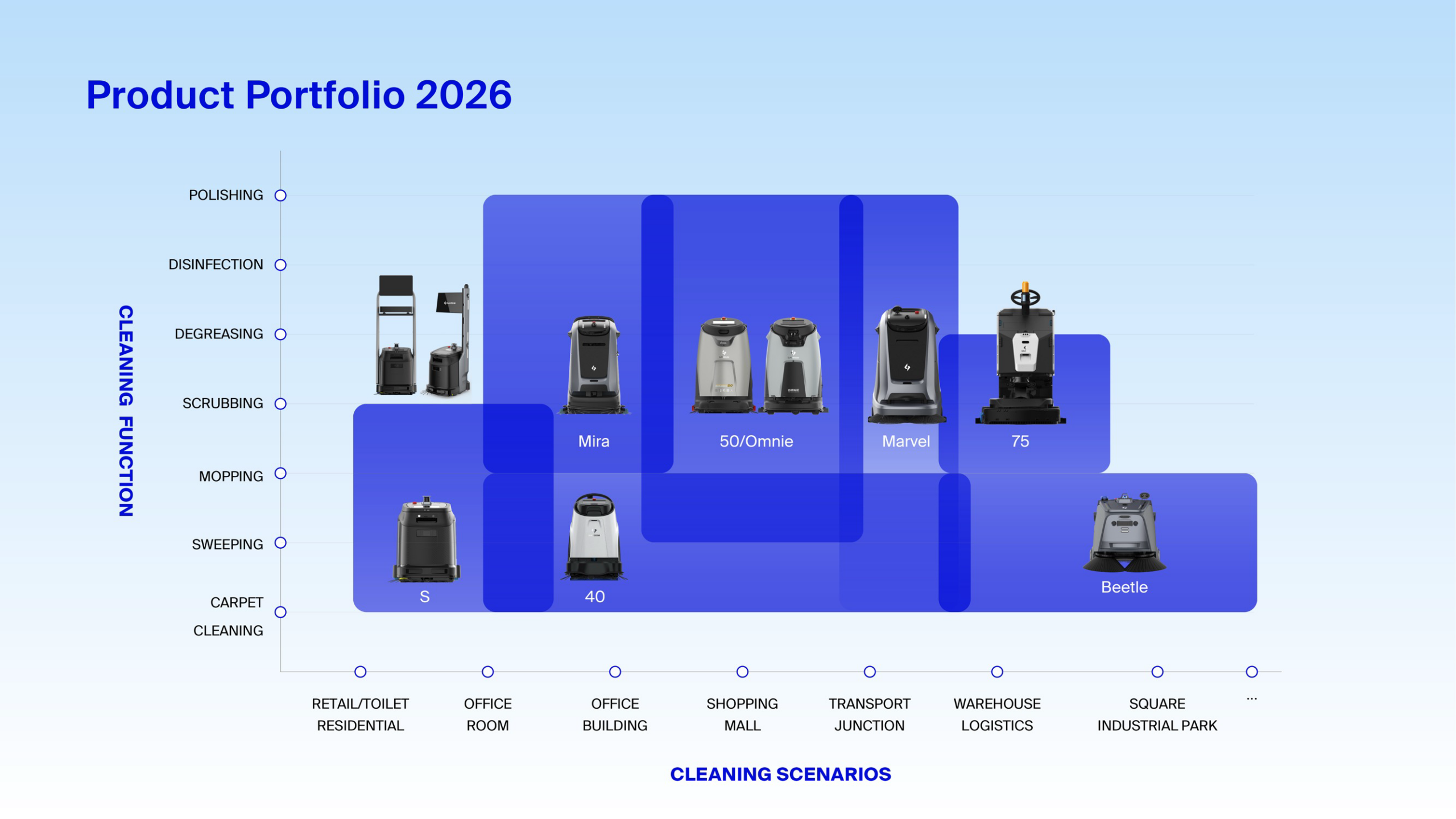 The product lineup — including the Phantas, Omnie, Beetle, and the newest additions Mira and Marvel — is designed to cover sweeping, mopping, scrubbing, and multi-function cleaning across all major vertical sectors. As Qin emphasized, no other manufacturer currently offers such a comprehensive robotic cleaning product portfolio.